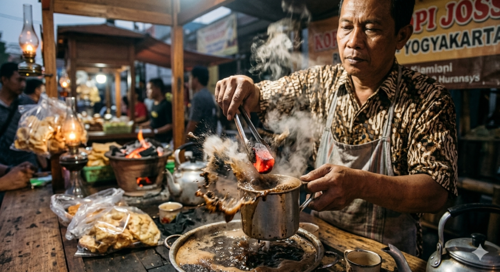 Indonezyjska Kopi Joss: Uliczni bariści w Yogyakarcie serwują kawę, do której tuż przed podaniem wrzucają… rozżarzony kawałek węgla prosto z paleniska. Napój głośno syczy, a węgiel podobno świetnie neutralizuje kwasowość.