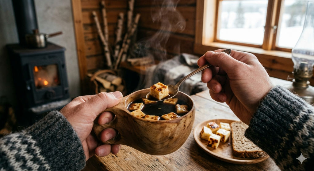 Skandynawski Kaffeost: Tradycja prosto z dalekiej północy. Do gorącej kawy wrzuca się kostki specjalnego, skrzypiącego sera (Leipäjuusto). Pływają w kubku niczym grzanki w zupie, a po wypiciu płynu, wyjada się miękki, przesiąknięty kawą serek.